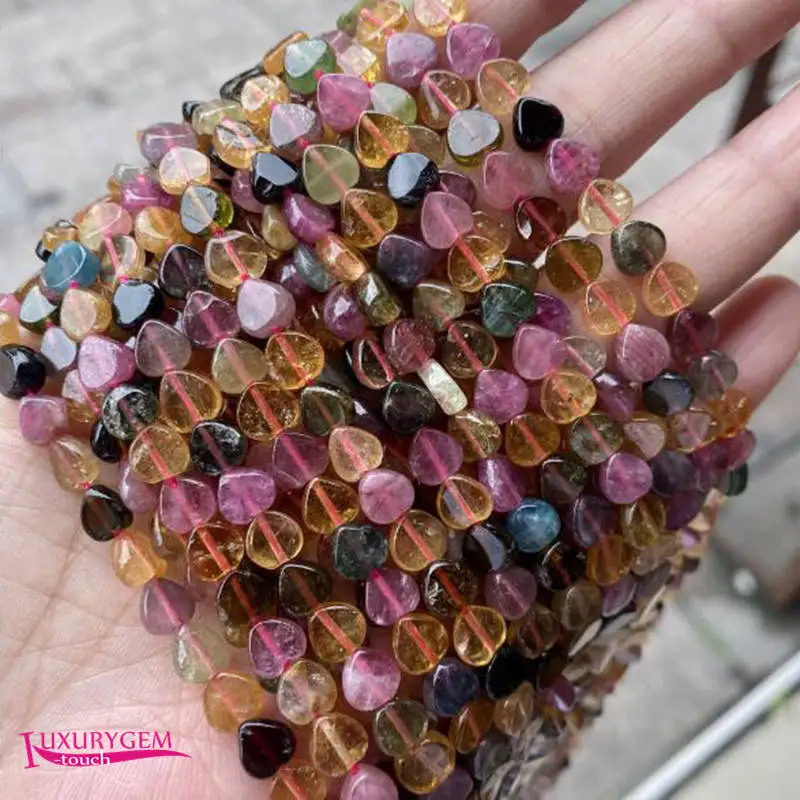Натуральный разноцветный турмалиновый камень, незакрепленные бусины высокого качества 7-8 мм, гладкая форма сердца, самодельный драгоценный камень, аксессуары для ювелирных изделий wk385