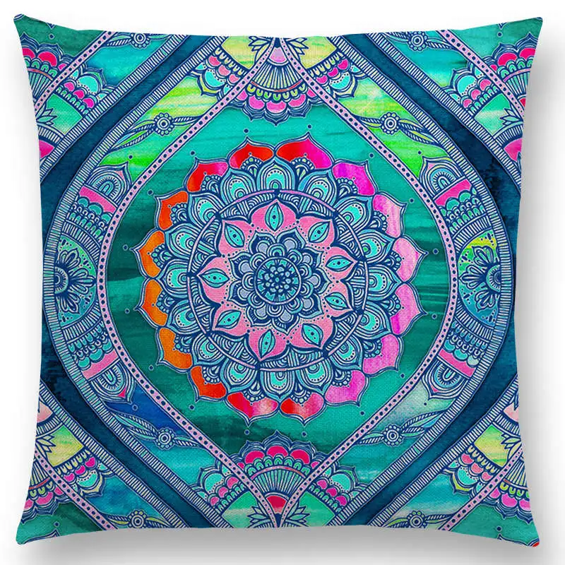 Наволочка с орнаментом в виде мандалы и цветов, этническое племя, г...