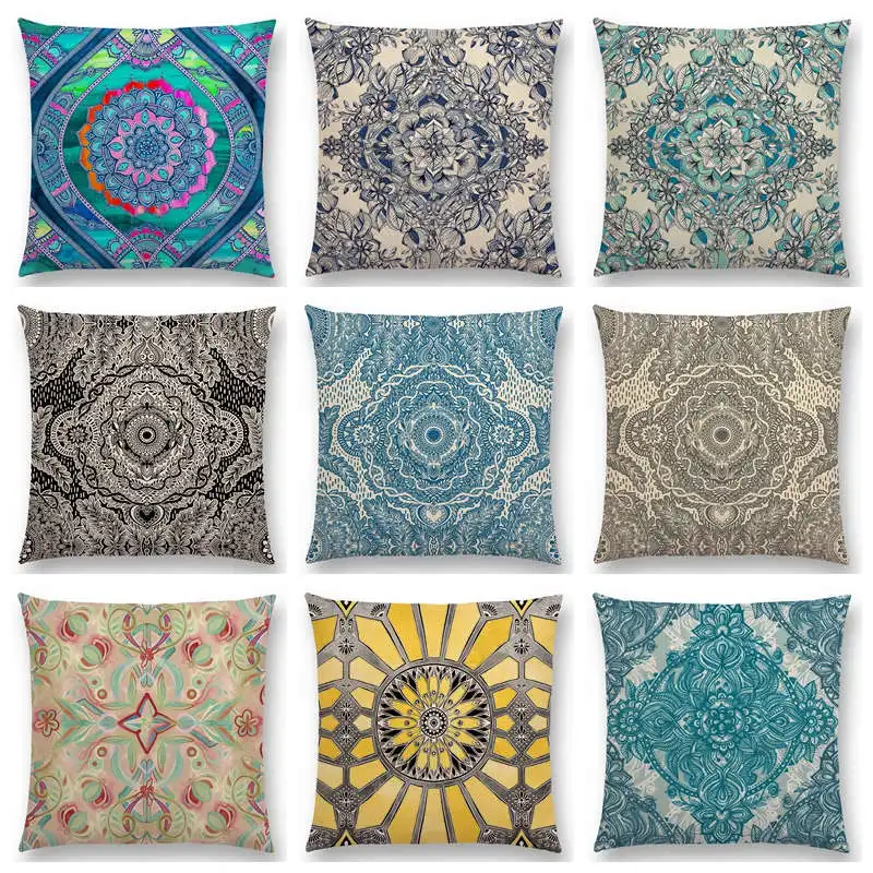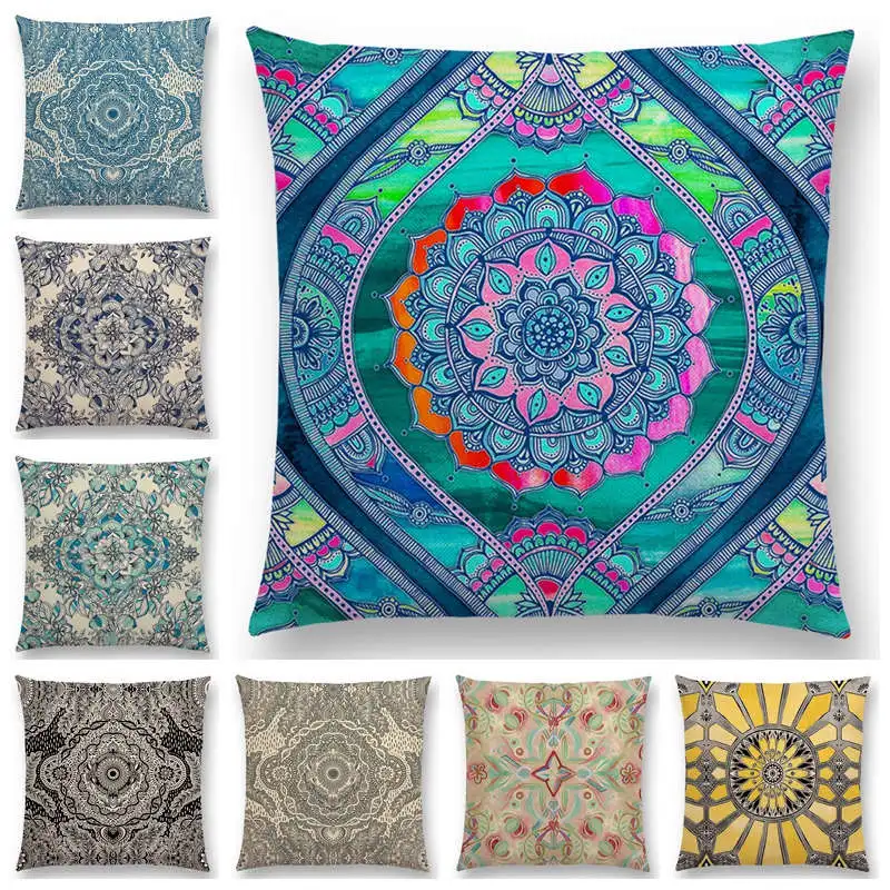 Декоративная подушка для дивана, с изображением мандалы и цветов, ф...