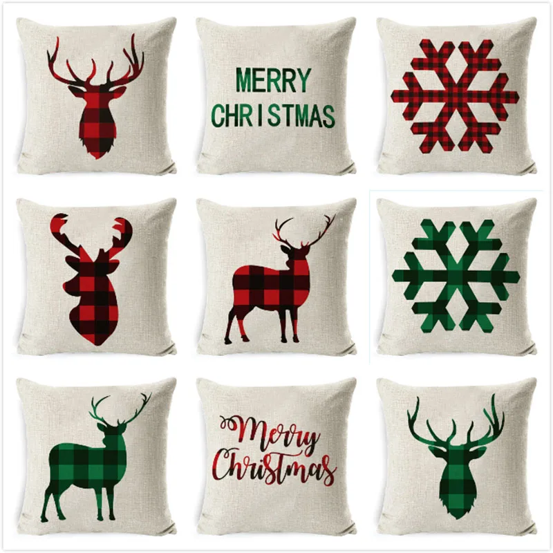 Рождественская подушка крышка в красную клетку, накидка для подушки...