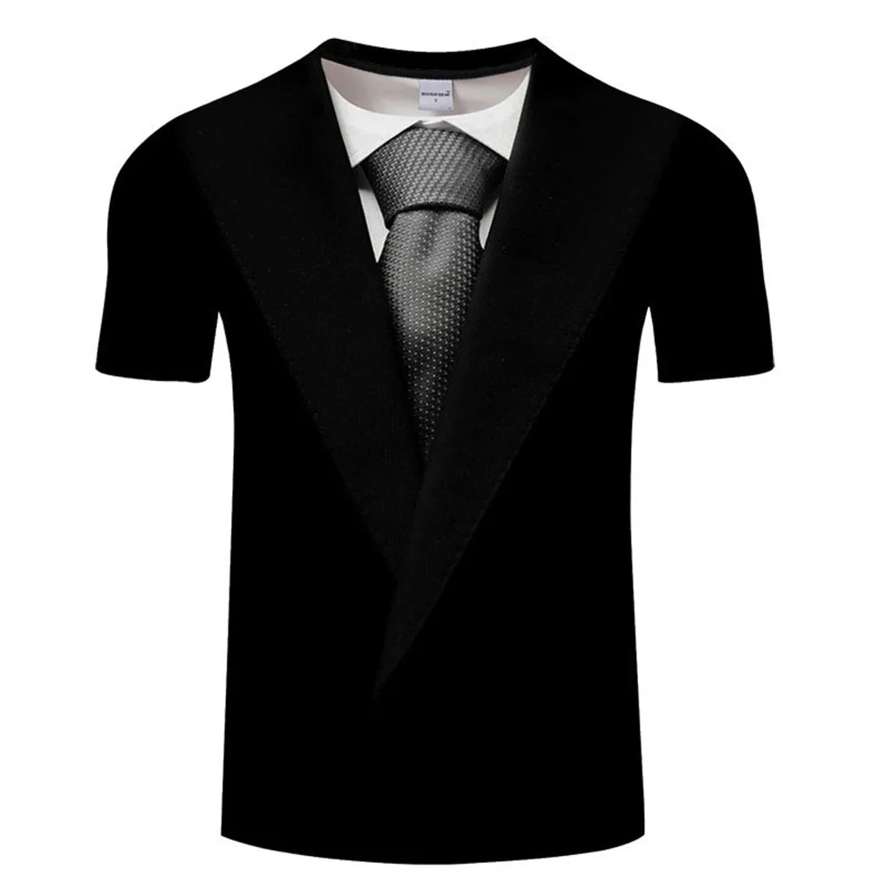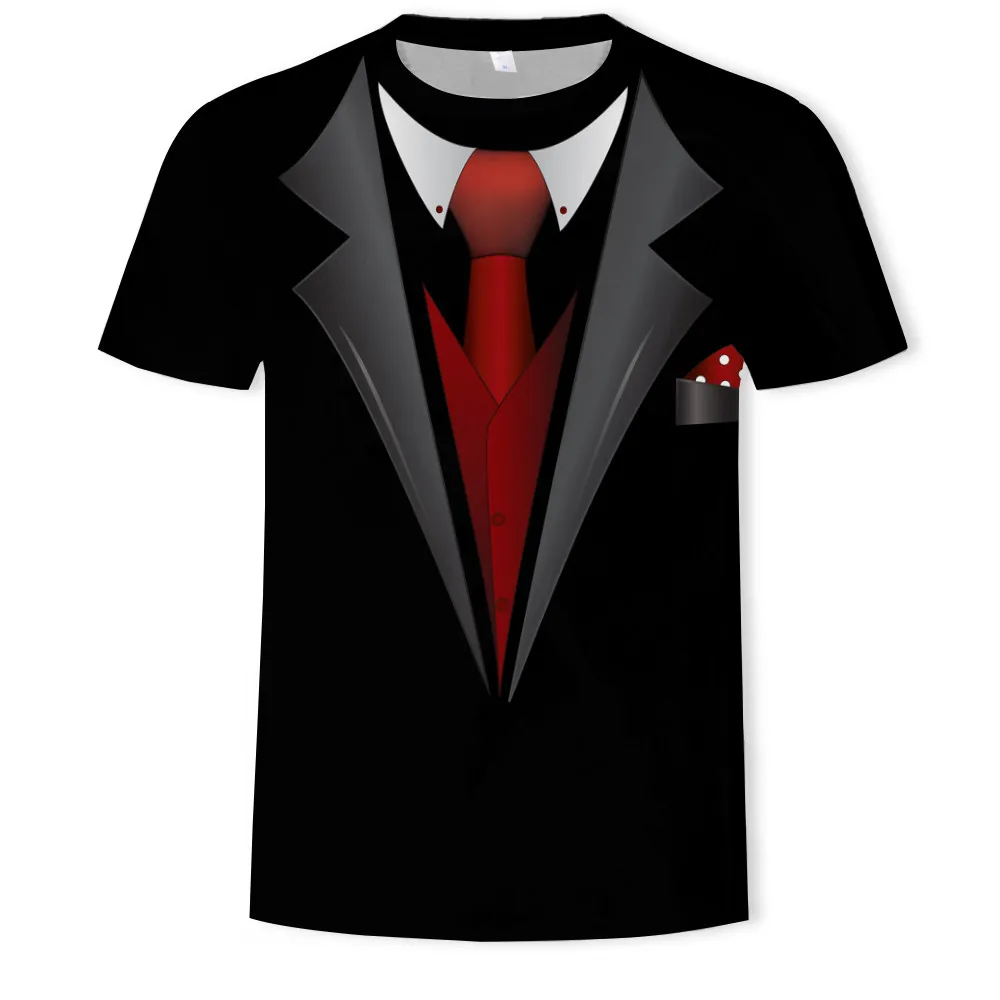 Футболка мужская с 3d-галстуком-бабочкой, летняя тенниска в стиле ретро под смокинг, костюм с 3D-принтом, Повседневная Уличная одежда с коротким рукавом, Забавный топ с имитацией костюма