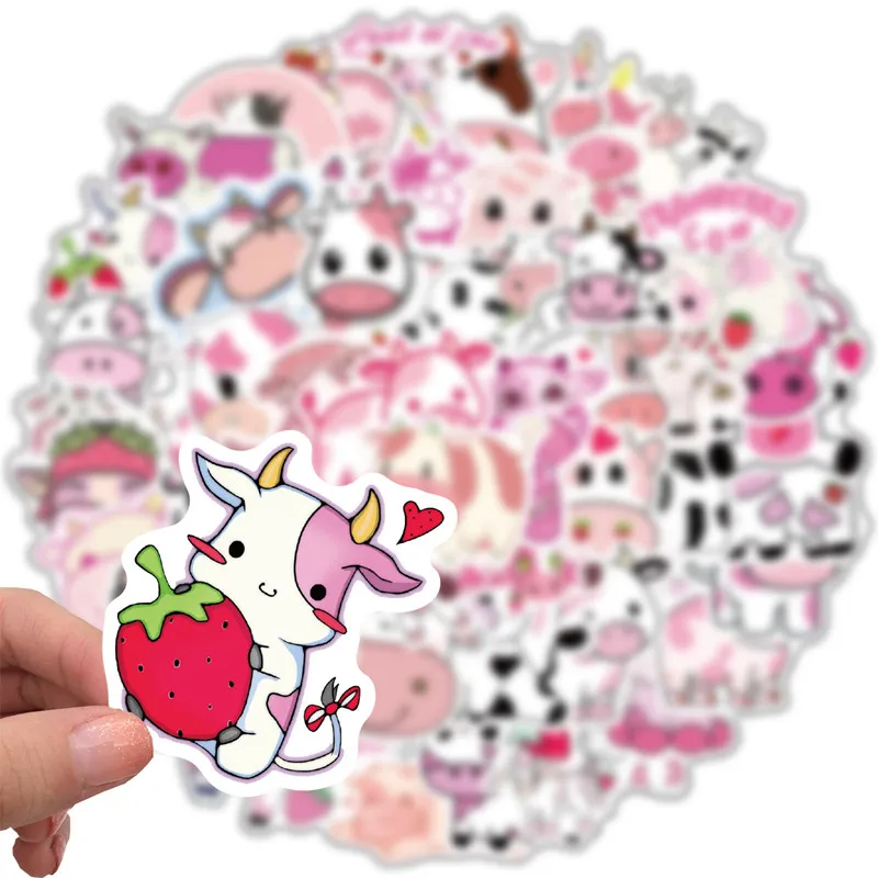 50 шт. с милым клубничным принтом с изображением коровы; Граффити стикер мобильный чемодан гитары стикер автомобиля Водонепроницаемый наклейки украшения