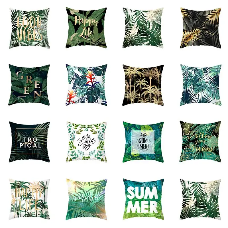 Летняя наволочка с тропическими растениями, декоративная льняная наволочка с зелеными листьями и пальмовыми листьями, наволочка, украшение для дома, диванная подушка
