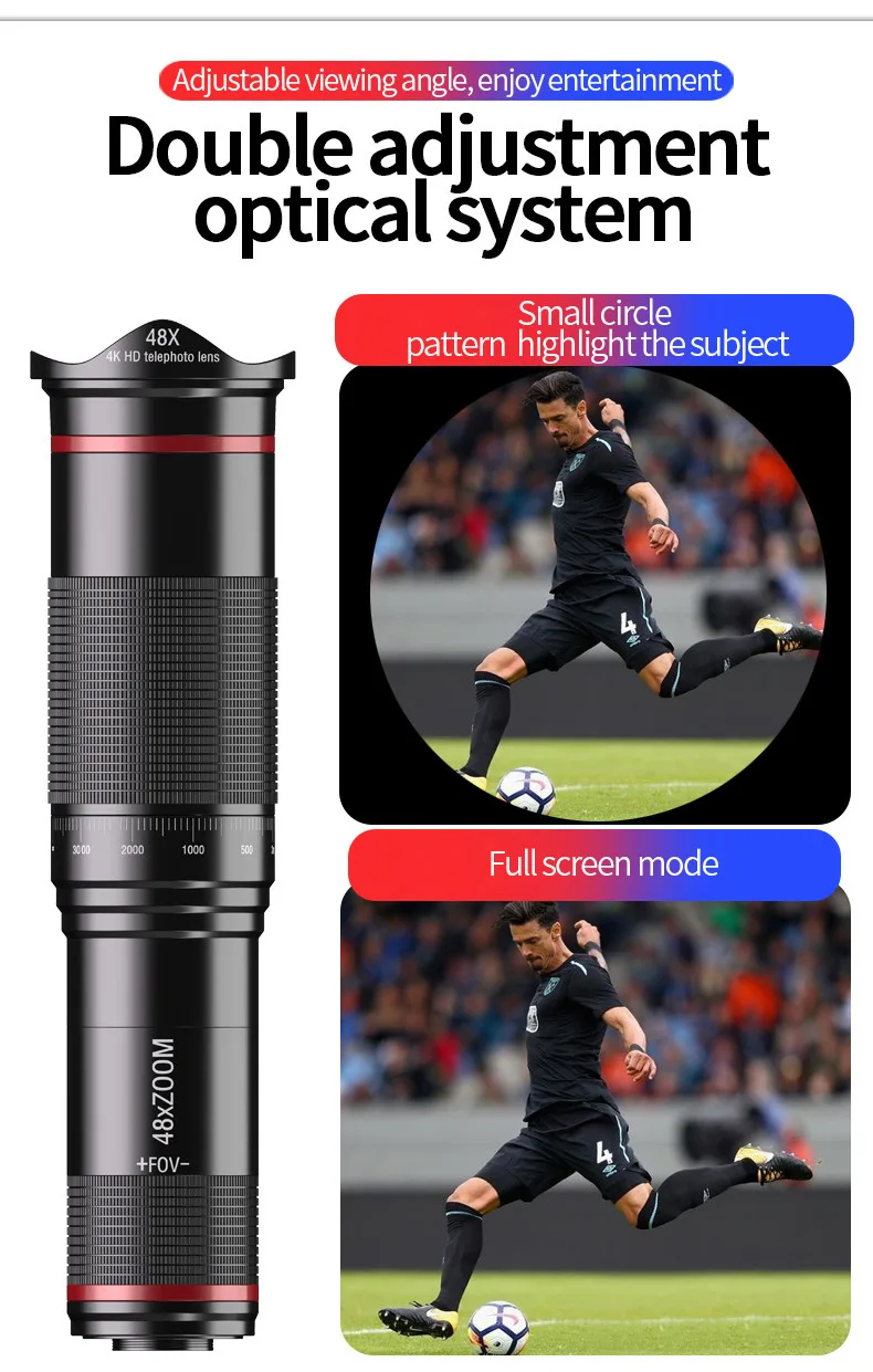Телескопический объектив 48X 4K HD для смартфона с двойным фокусом