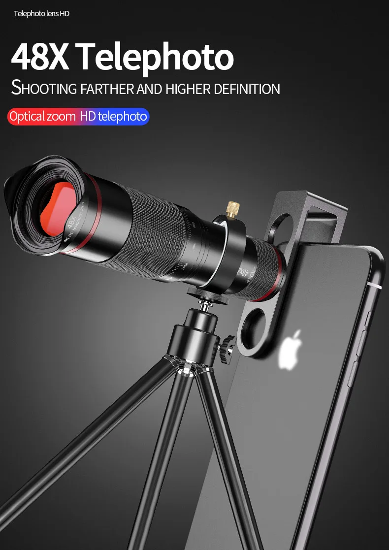 Телеобъектив HD 48X, металлический зум-объектив, телескоп, Монокуляр мобильный телефон + Выдвижной Штатив для iPhone, Xiomi, Huawei, всех смартфонов