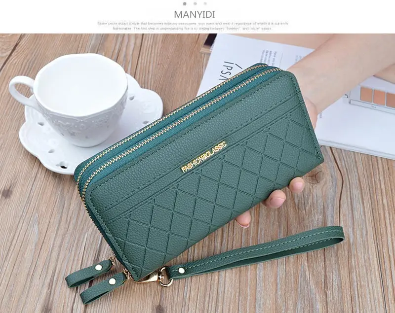 Кошелек женский с двойной молнией, удлиненный вместительный клатч, ...