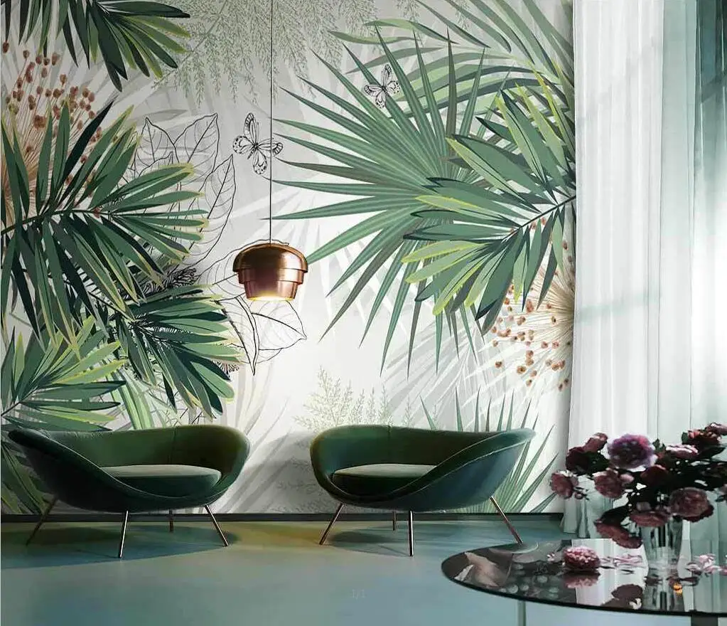 Beibehang пользовательский Новый Ручная роспись тропических растений свежий тропический лес пальмовый лист внутренний фон бумажная бумага