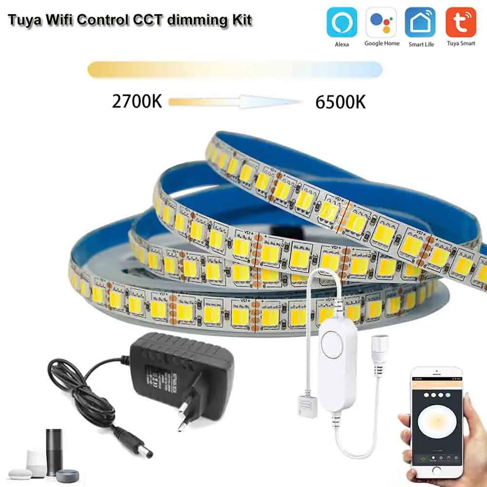 2 м 120 светодиодный комплект s CCT (1*2 м 5050 CW / WW светодиодный + 1 * контроллер + 1 * 12V2A EU/US/AU/UK адаптер питания)