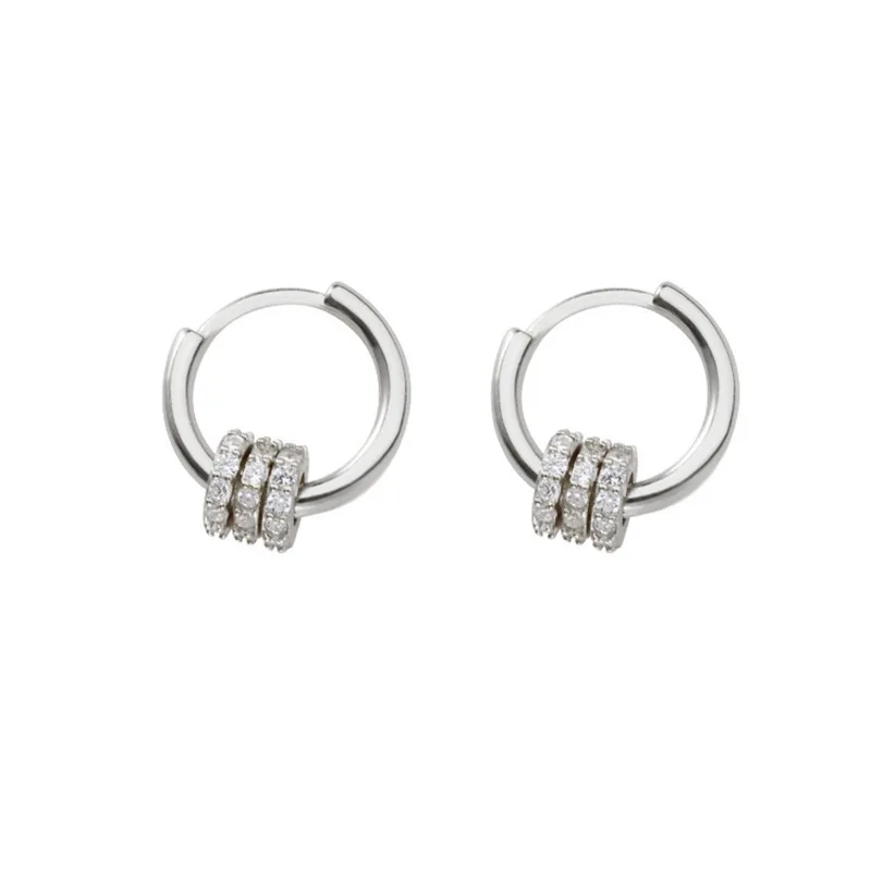 Натуральная 925 пробы серебро Франт небольшой Циркон инкрустированные круг серьги в виде колец, золотые ювелирные серьги