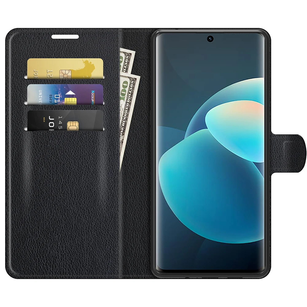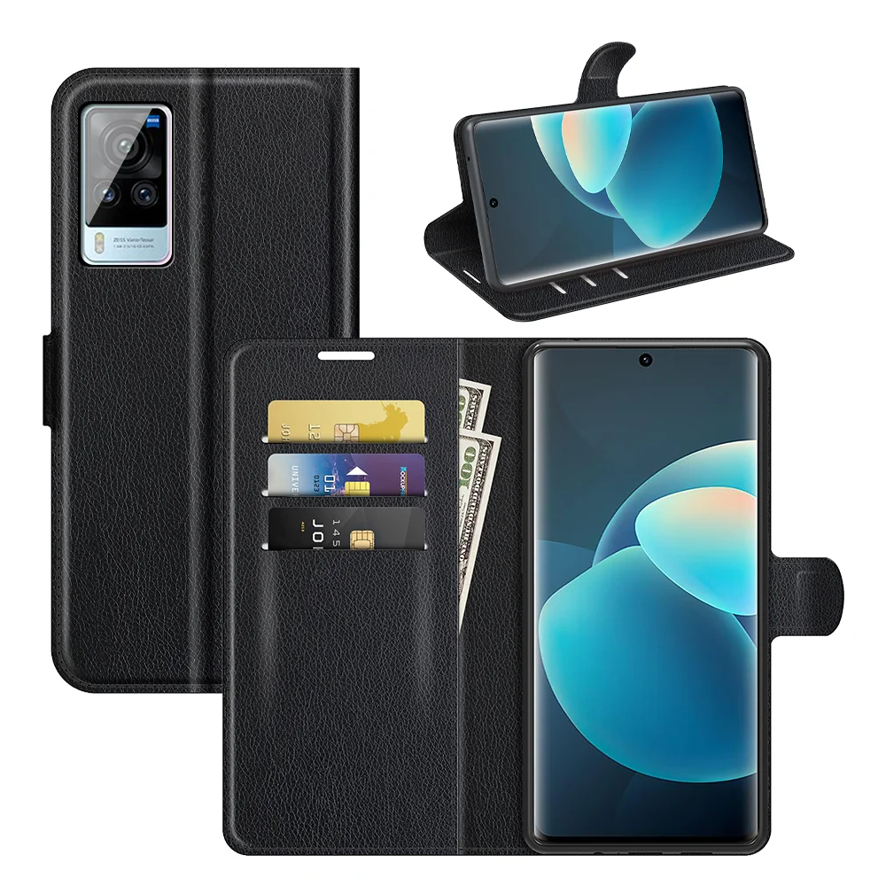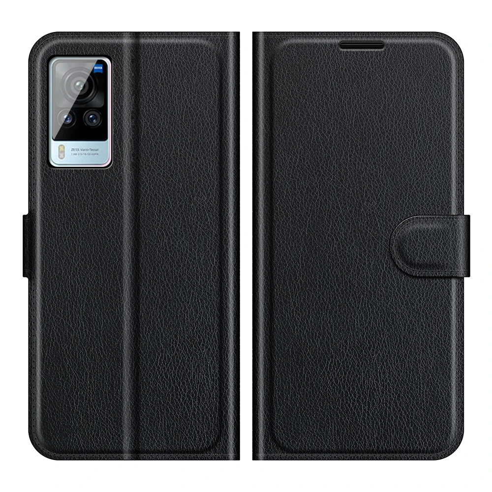 VivoX60 +Чехол для Vivo X60 Pro 5G (2021) V2046A, чехол-бумажник, чехол-книжка с отделением для карт, кожаный черный V2046