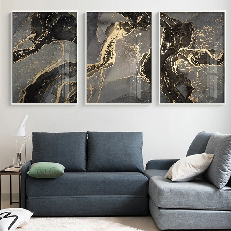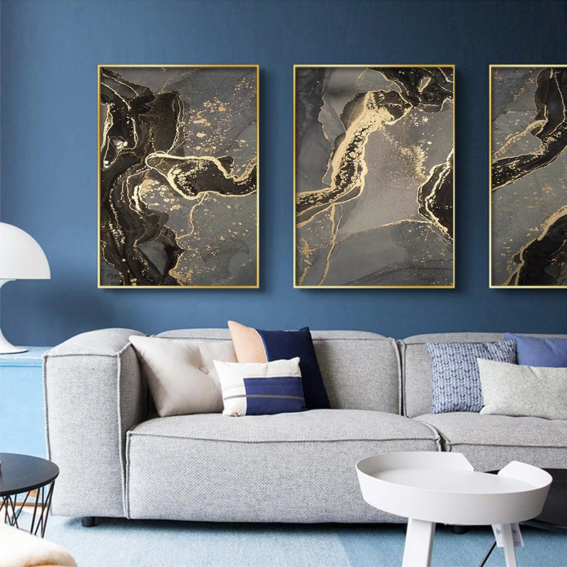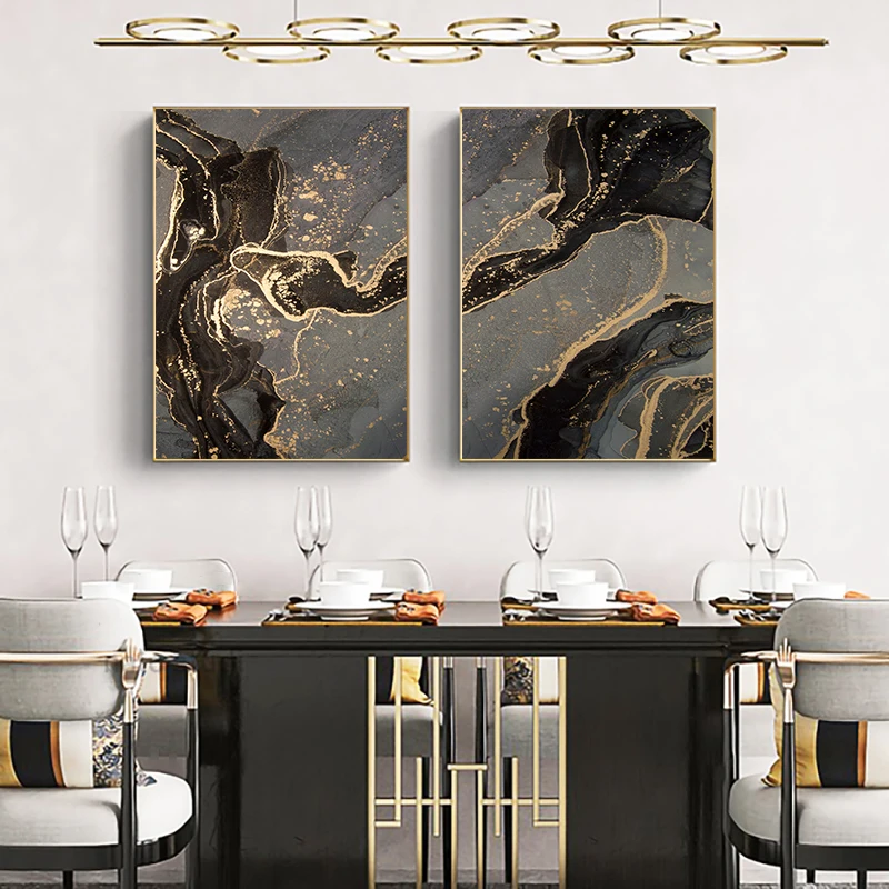 Золотисто-черная абстрактная линия, холст, постер, мраморный роскошный принт, Современный домашний декор, настенная живопись, настенные картины для гостиной