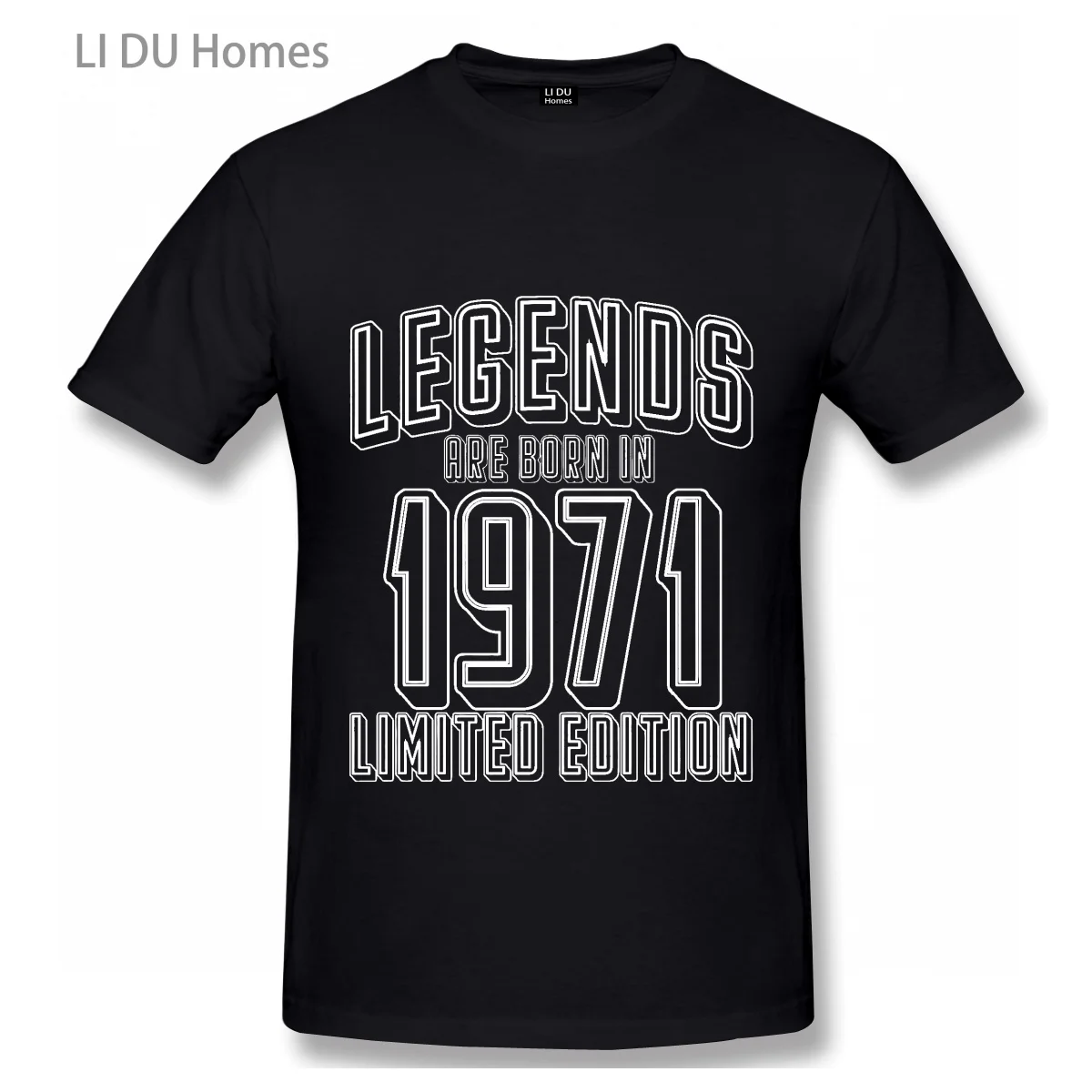 Футболка хлопковая оверсайз с коротким рукавом и надписью Legends Born In 1971 50-й подарок на день рождения