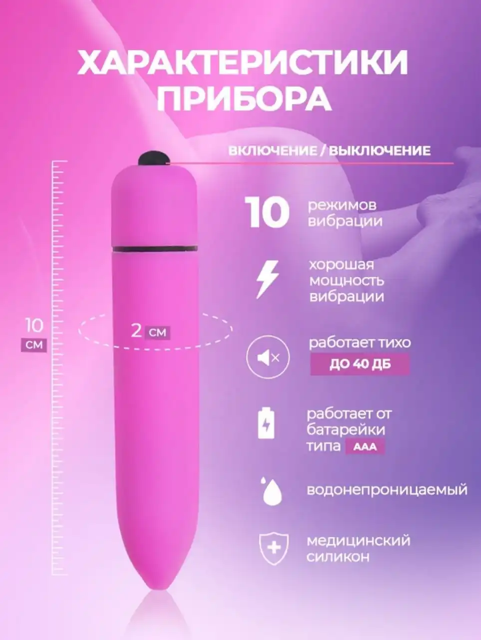 Вибропуля для вагинальной и клиторальной стимуляции 10 см 10 режимов