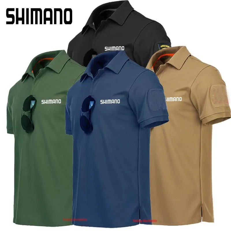 Военная тактическая футболка Shimanos для рыбалки, Спортивная быстросохнущая дышащая рубашка с отворотом для рыбалки, летняя одежда для пешего туризма и рыбалки