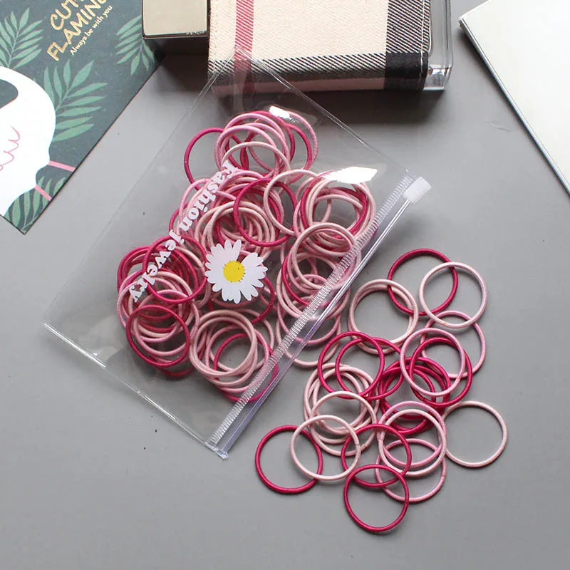 100 шт.лот резинки для волос для девочек, эластичная резинка, розов...