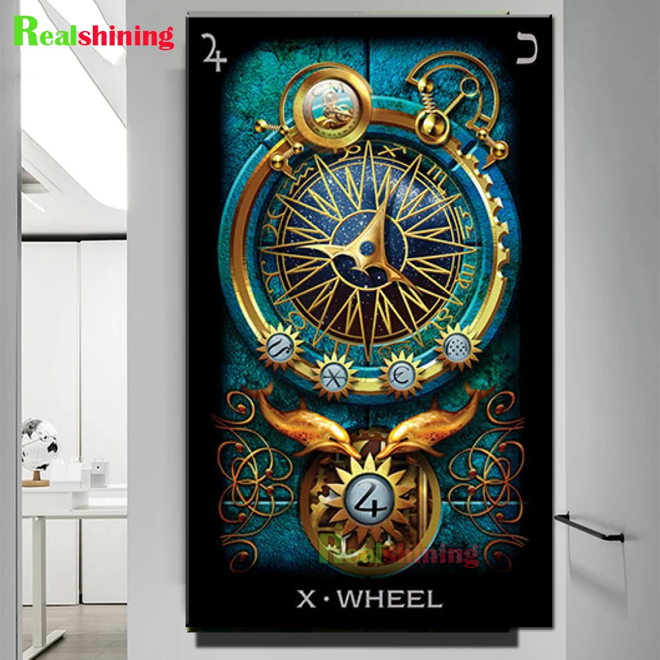 Полная Алмазная картина, часы, Золотая рыбка, вышивка крестиком, колесо, рукоделие, аксессуары для рукоделия, N2194