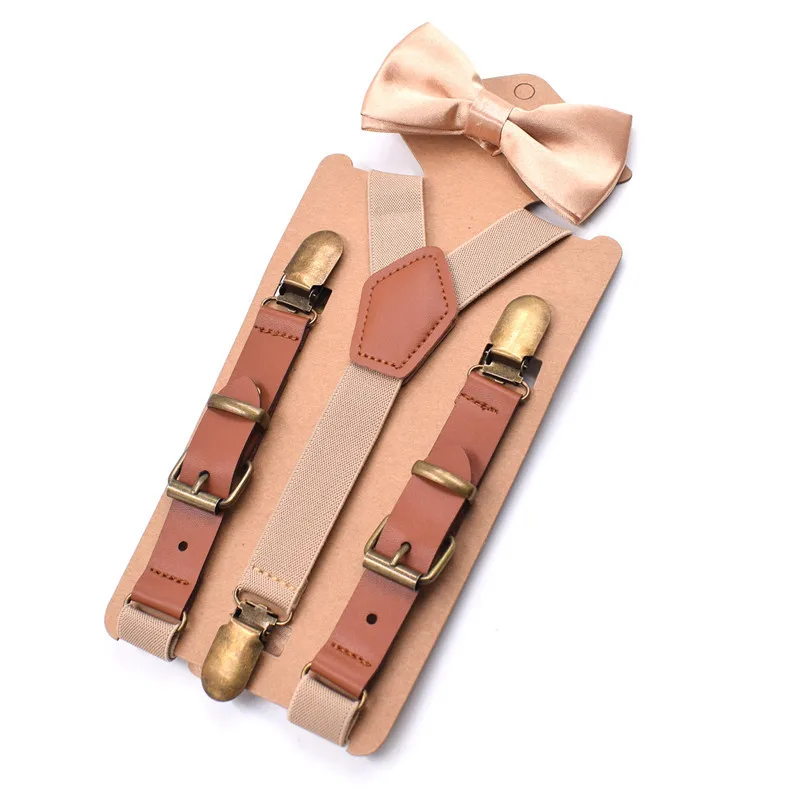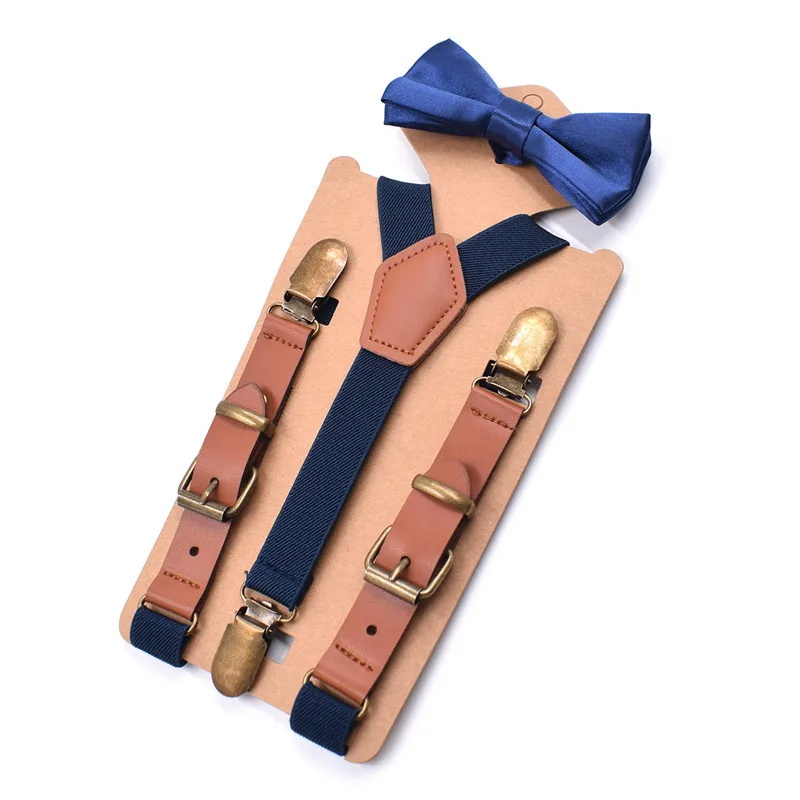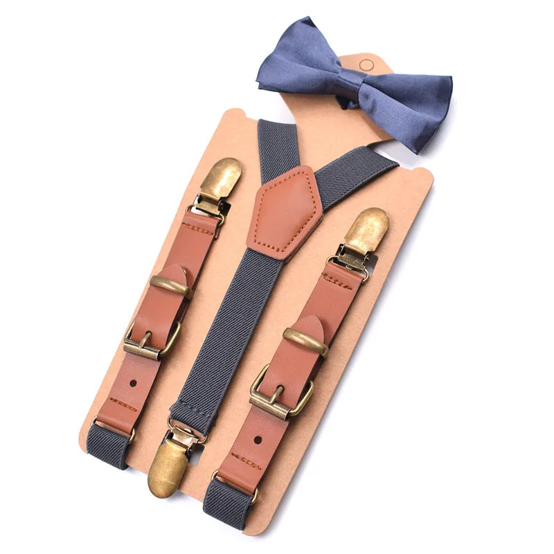 Детские коричневые кожаные подтяжки на 3 зажимах с Y-образной спиной и кольцом-бабочкой, комплект с галстуком-бабочкой, наряд для дня рождения 75 см * 2 см, регулируемые