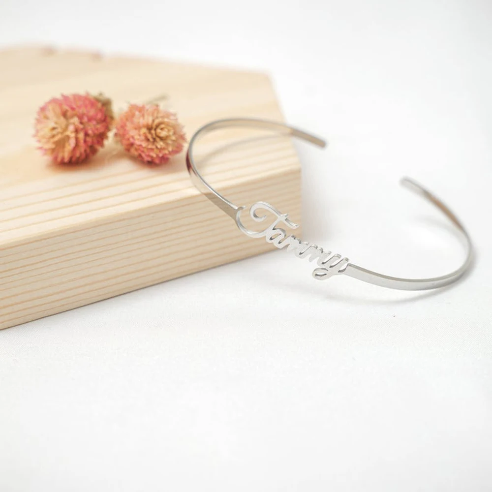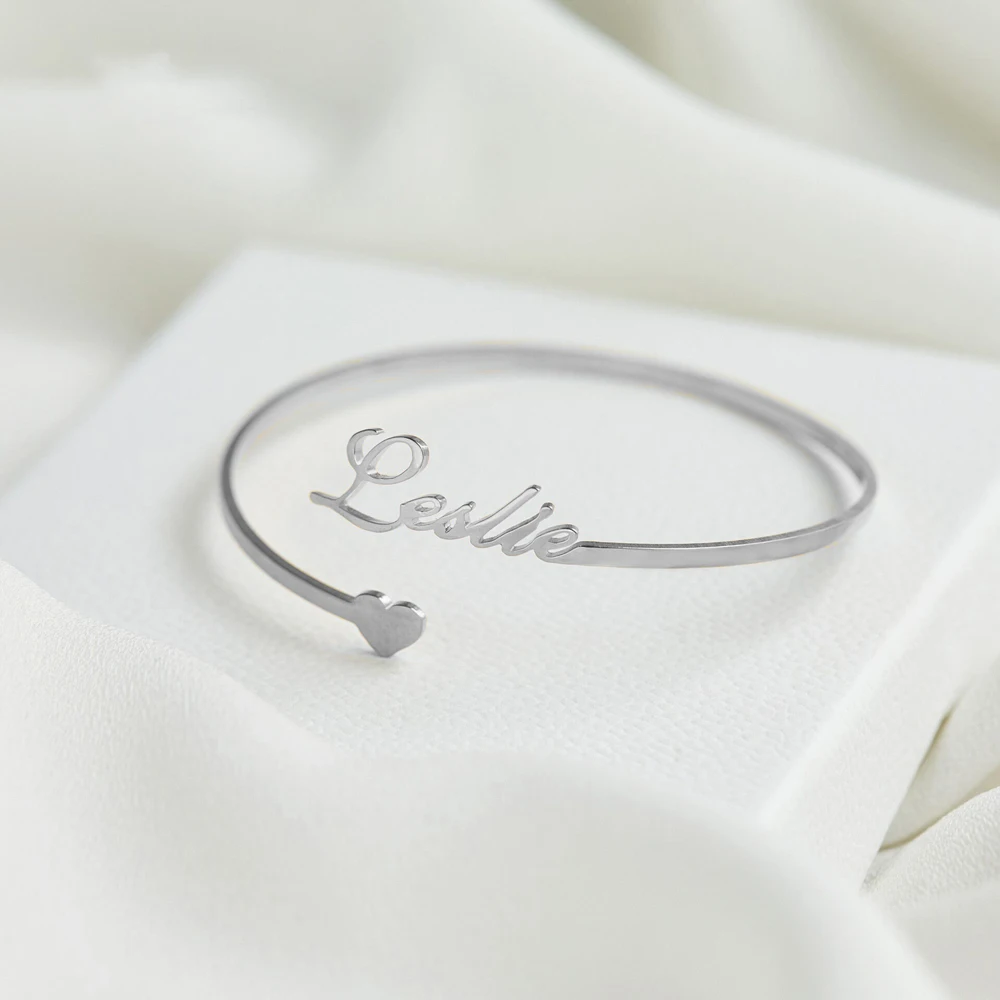 Браслет женский из нержавеющей стали с именем под заказ, Открытый браслет в форме сердца, модная простая бижутерия для свадьбы, вечеринки, подарок на день рождения