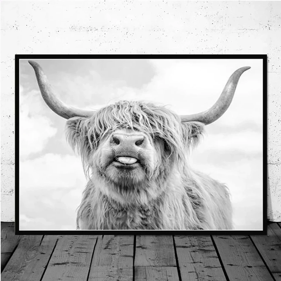 Постер и принты в скандинавском стиле, с изображением коровы, черно...