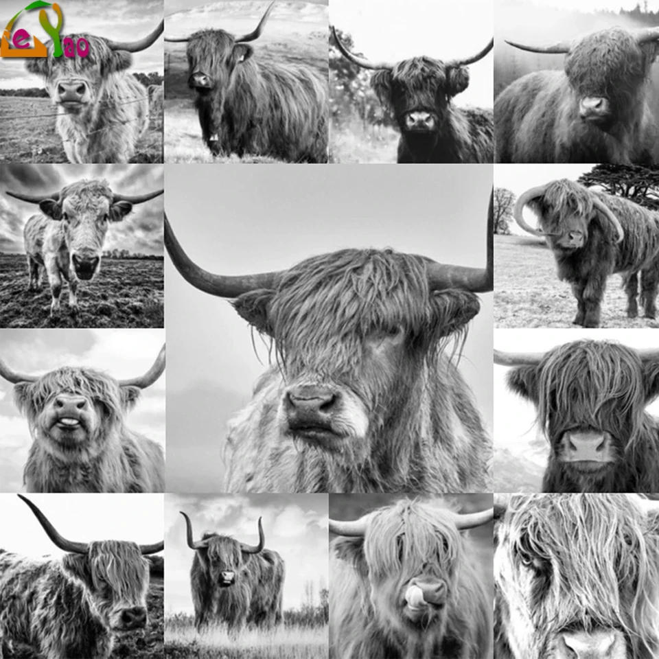 5d Diy Алмазная картина 5d Highland корова черно-белые Животные вышивка Стразы домашний декор Ручная работа наборы крестиков ремесла