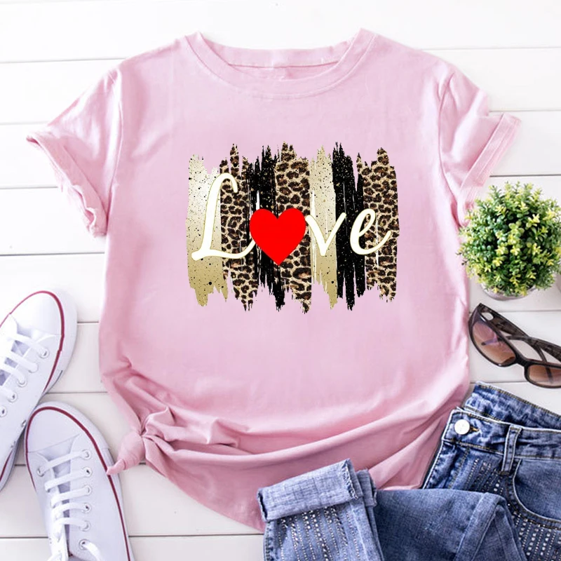 Уличная Женская Повседневная Футболка Harajuku с леопардовым принто...
