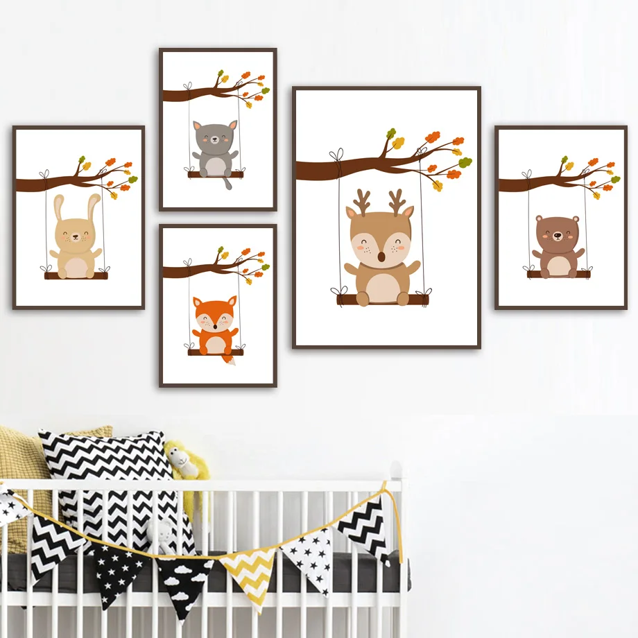 Мультяшная лиса медведь мышь кролик олень собака Детская настенная ...