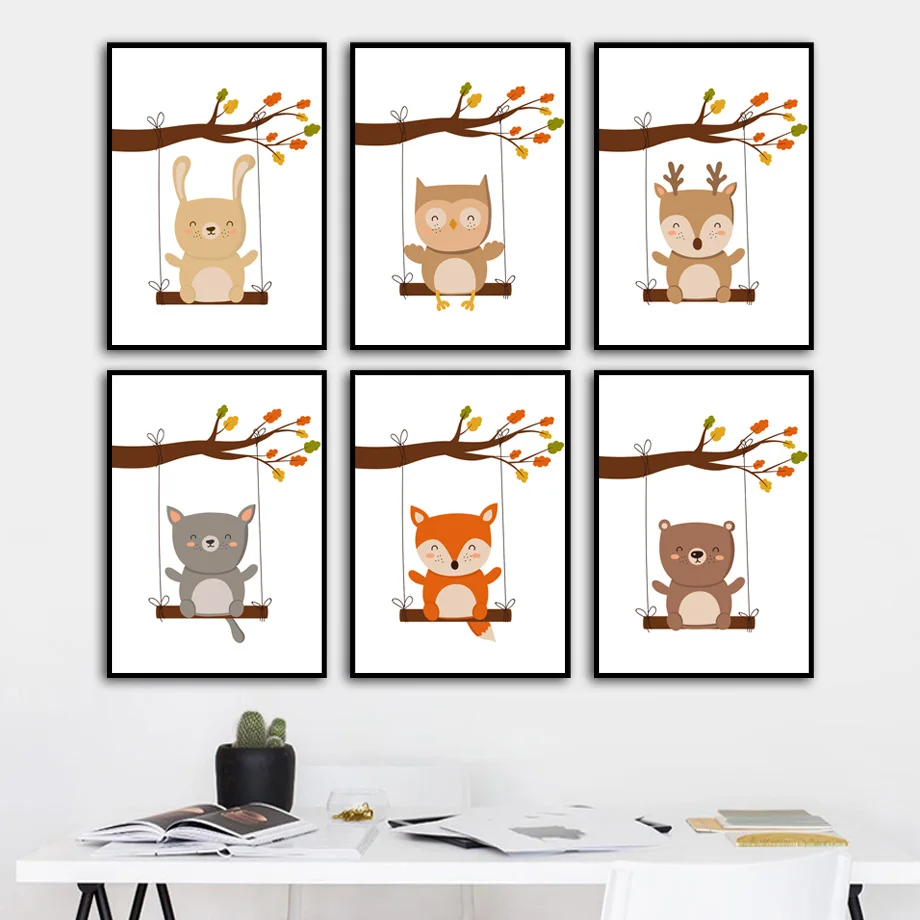 Nordic Плакаты и печатает лес Животные лисички, Рисунок совы "Медведь", "Кролик", "настенный художественный холст картина настенные картины для детской комнаты для маленьких девочек украшение комнаты
