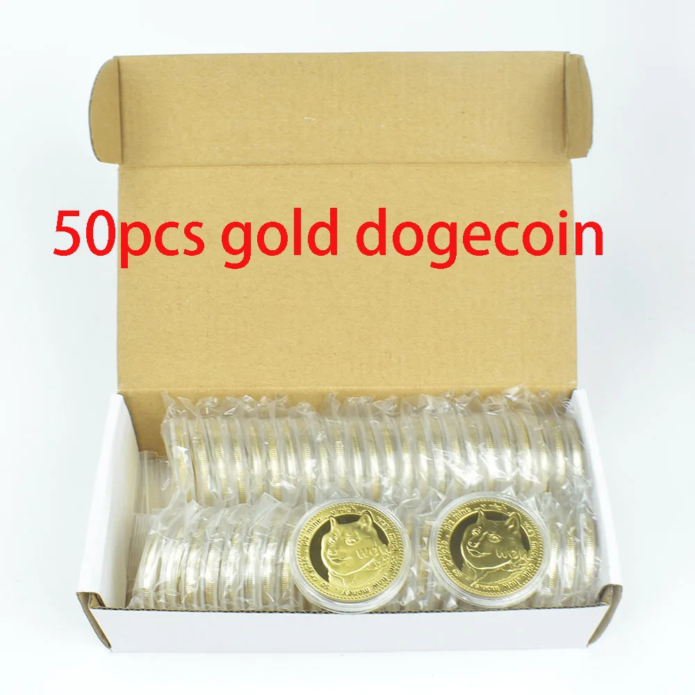 Позолоченная Посеребренная монета Dogecoin, 50 шт., монета для коллекции