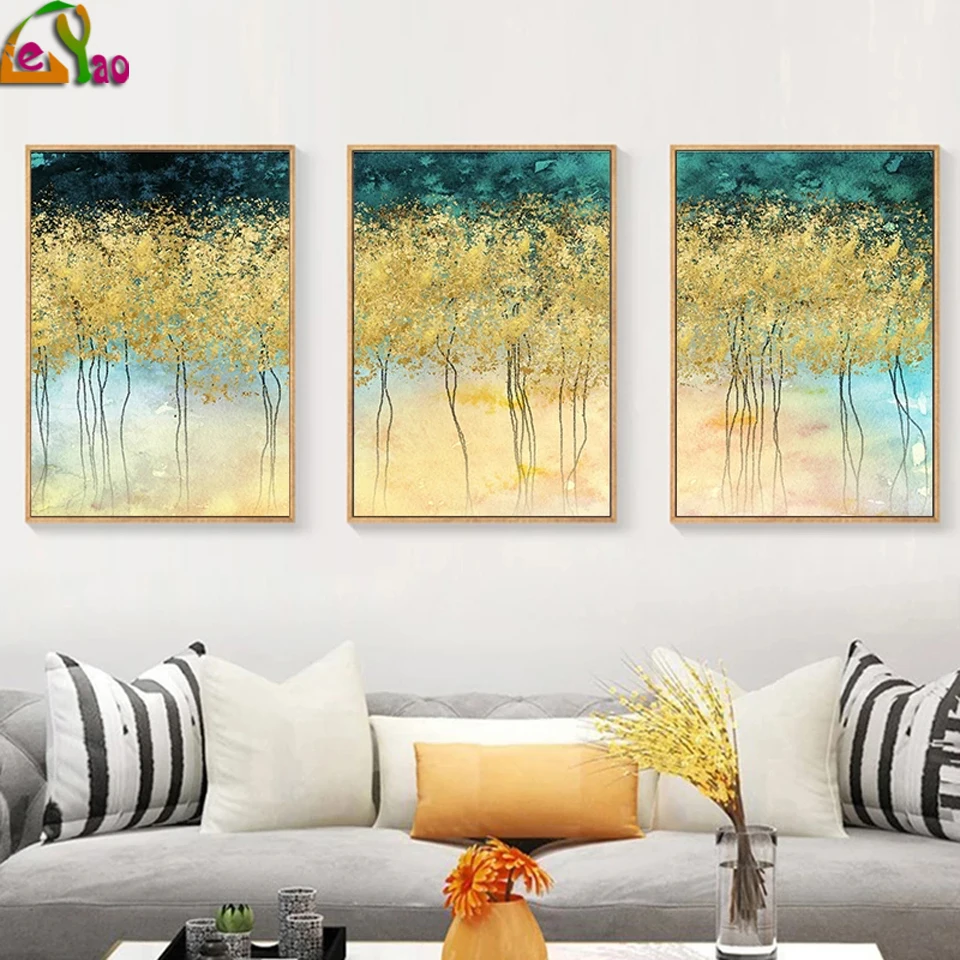 5d Diy Алмазная картина золотое дерево зеленое растение Алмазная вышивка мозаика Стразы абстрактный домашний Декор подарок наборы крестиков