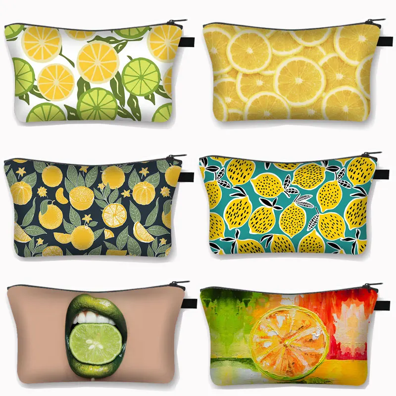 Косметичка с авокадо, лимоном, женская модная косметичка, сумка на молнии для девушек, Женский держатель для помады, милая дорожная сумка для стирки