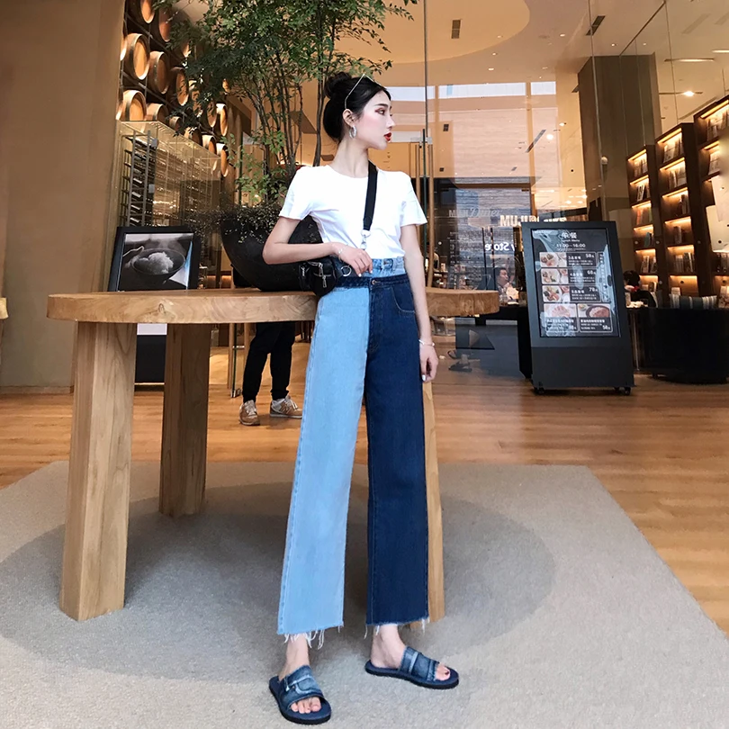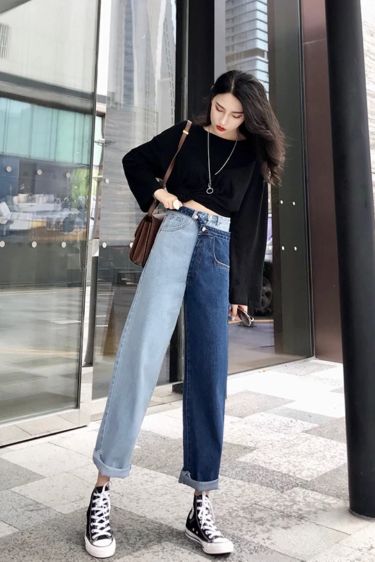 SuperAenНовинка 2021 года; Джинсы с имитацией двух предметов; Женские осенние прямые брюки до щиколотки