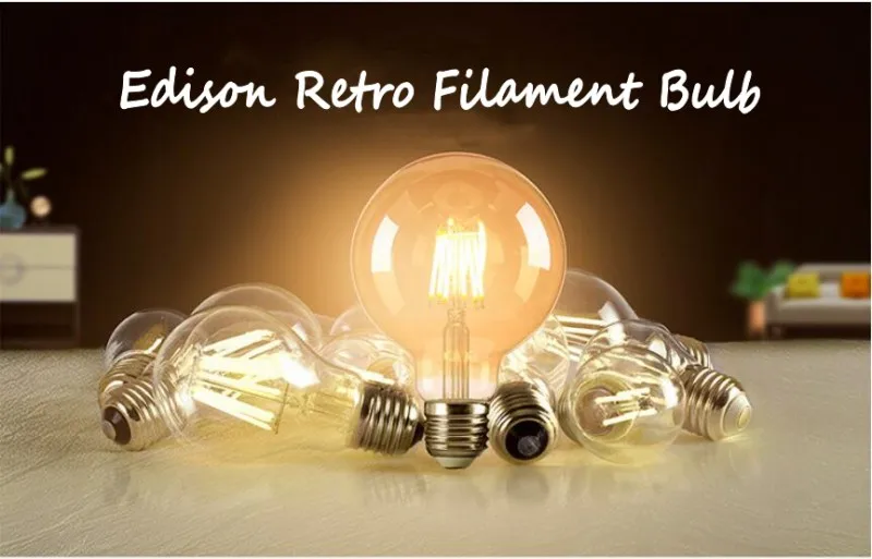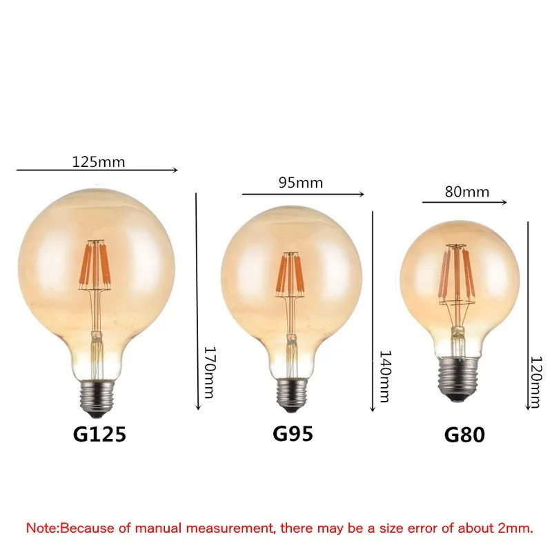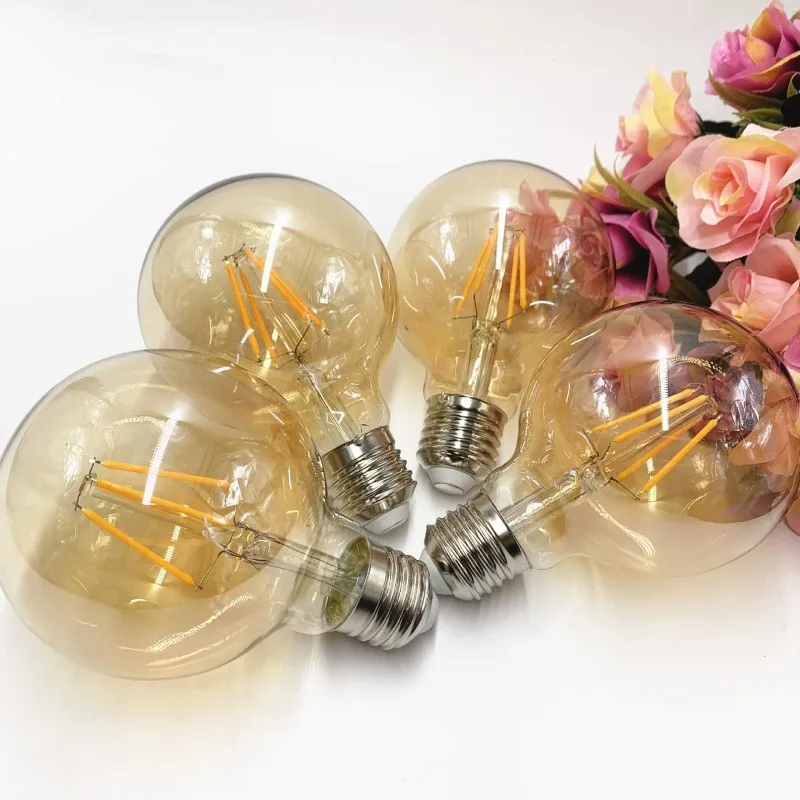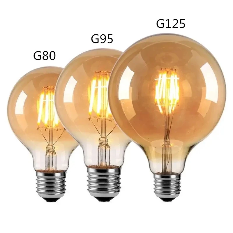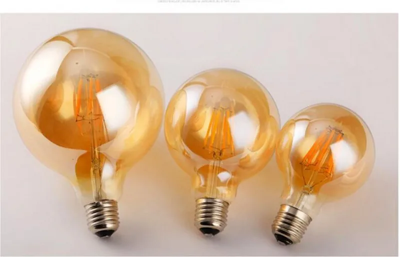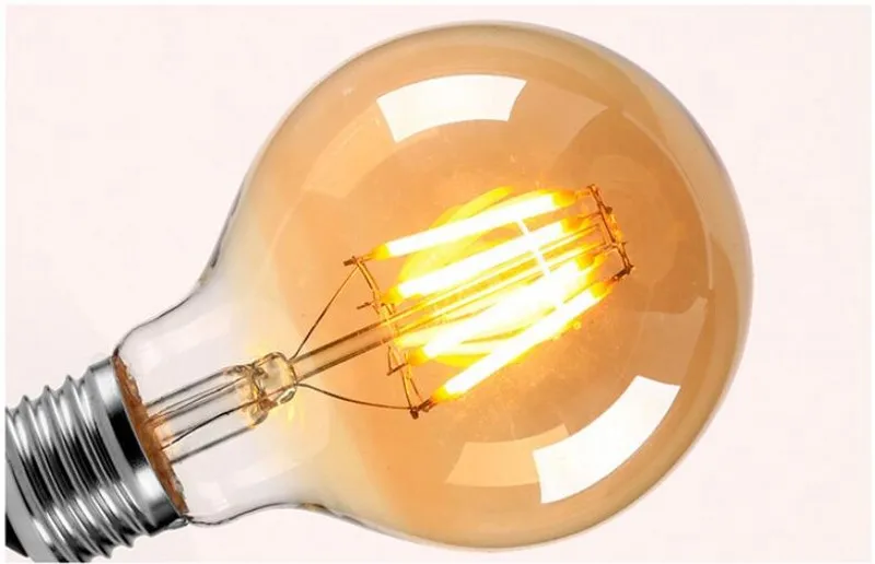 Электрическая лампочка эдисона лампа со светодиодными нитями на цоколе E27 G80 G95 G125 большой глобальный светильник Светодиодная лампа 4 Вт 6 Вт 8W10W лампой накаливания AC220V светильник коричневый Крытый настенный светильник