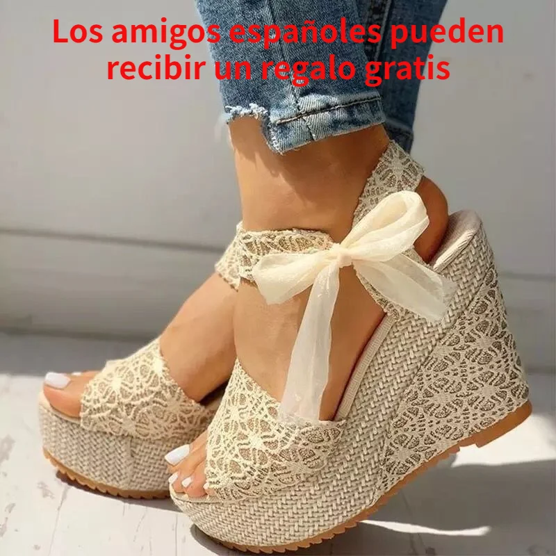 QZ33 летние женские сандалии 2021 модные на высоком каблуке кружевные с цветочным принтом для отдыха на танкетке с открытым носком для вечерние на платформе роскошный бренд высокое качество