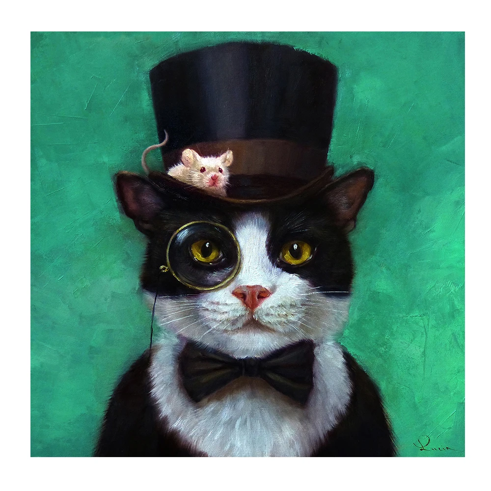 Картины животных: кошка и мышь с очками, картина маслом, холст, плакаты и принты, настенные картины для гостиной