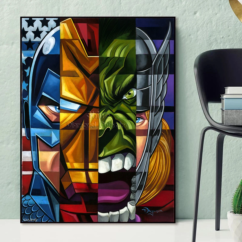 Алмазная картина 5D "сделай сам", картина из мультфильма Марвел, Мстители, герои, квадратная круглая вышивка, Набор для вышивки крестиком, домашний декор, художественный подарок