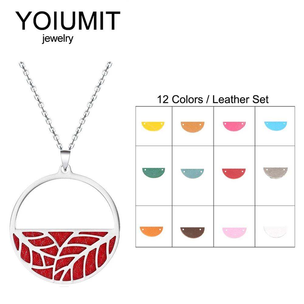 Ожерелье с подвеской в виде цветка из кожи, из нержавеющей стали