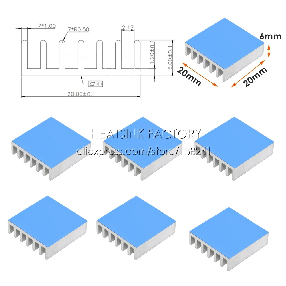 15 шт., алюминиевые радиаторы с термопрокладкой, 20 х20х6 мм