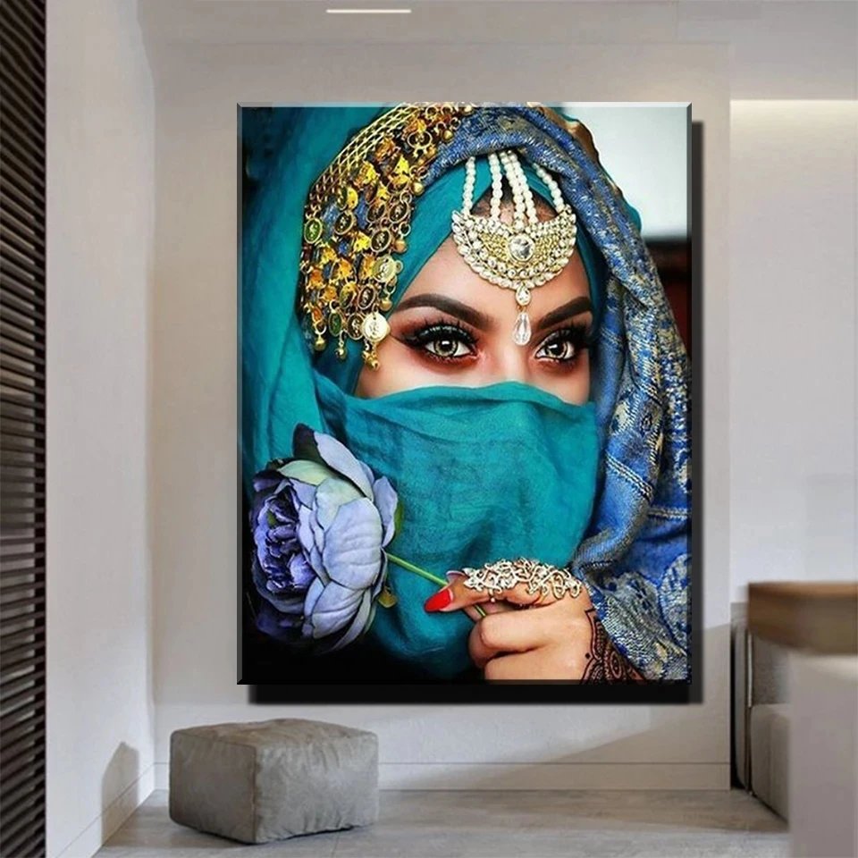 Полноразмерная Алмазная картина 5D с вуалью Женская Цветочная Арабская мусульманская Стразы Вышивка крестом Алмазная мозаика Алмазная вышивка подарок P1174