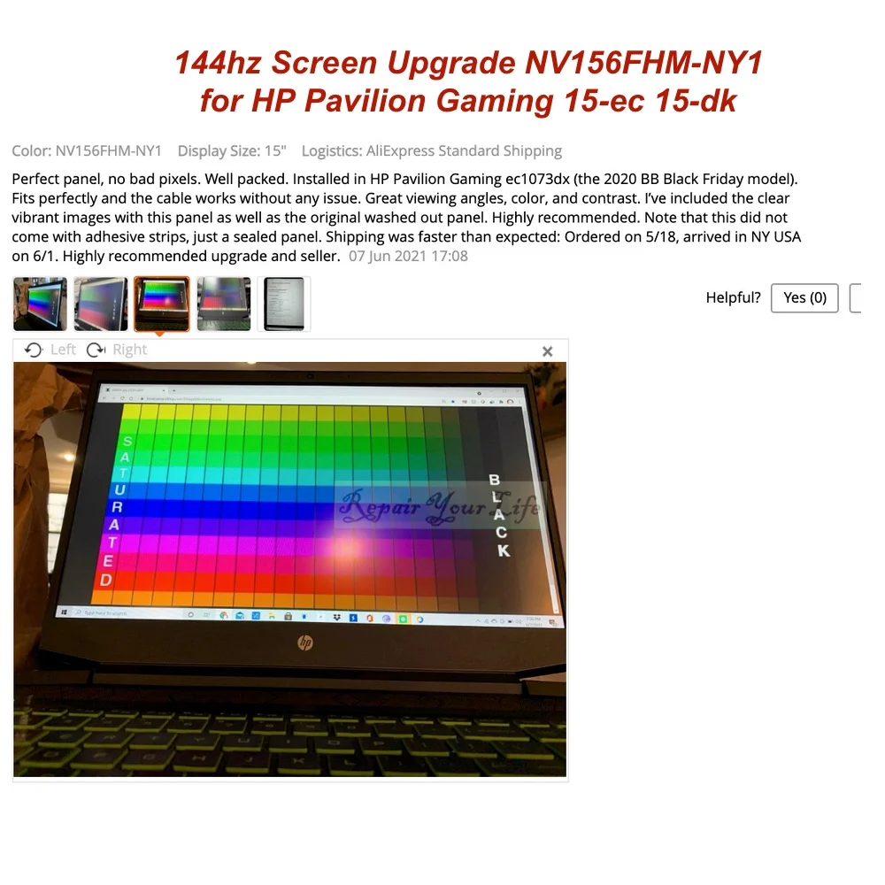 Compatible Models 05144hz Screen Upgrade NV156FHM-NY1 for HP Pavilion Gaming