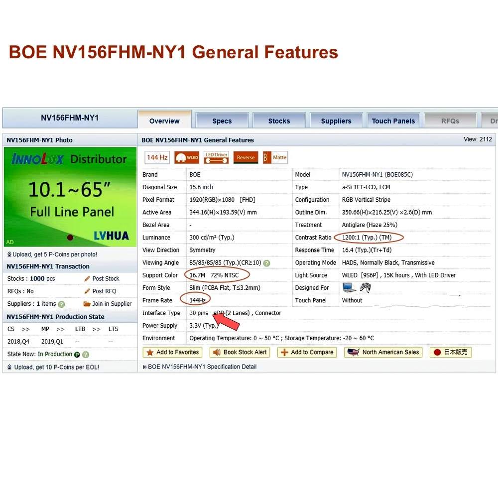 Compatible Models 04B156HAN02.2 B156HAN02.3 B156HAN02.4 LP156WF9-SPC1