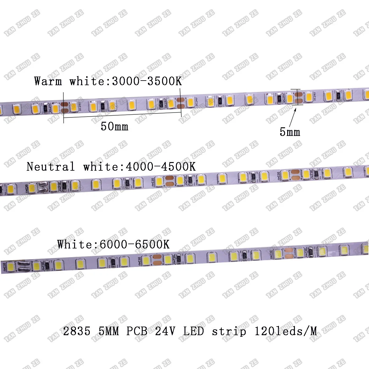 5 мм ширина печатной платы 5V 12V 24V 5M IP20 не Водонепроницаемая 2835SMD 120Ledm светодиодная лента, белыйтеплый белый Регулируемый светильник 12 В постоянного тока
