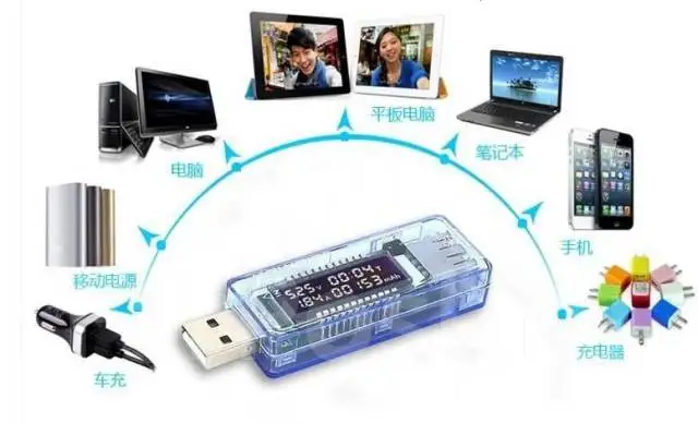 Универсальный измеритель напряжения, тока, и ёмкости нагрузки в порте USB. USB-тестер питается непосредственно от гнезда USB, имеет дисплей с белыми цифрами. Обновление показаний происходит 1 раз в секунду. USB мультиметр имеет стандартный USB штекер с кабелем длиной 16 см, и стандартные гнезда USB (тип А) и microUSB для подключения нагрузки. Устройство поддерживает передачу данных. Мультиметр откалиброван на заводе и готов к использованию.