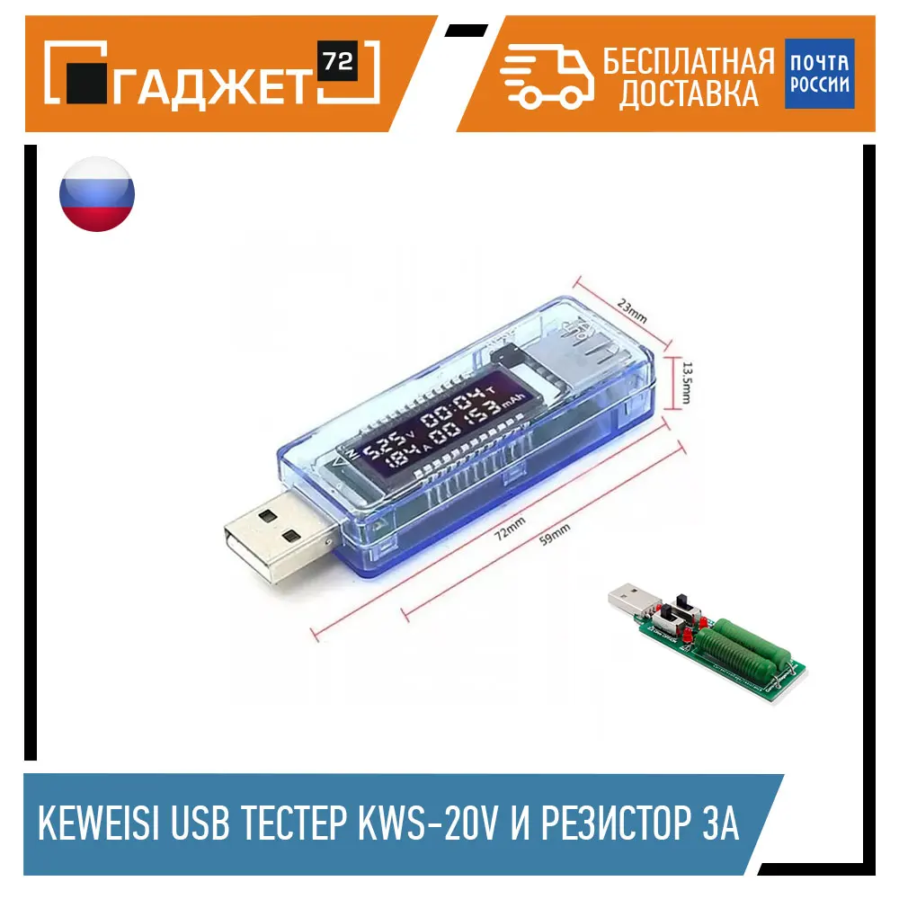 Keweisi USB ТЕСТЕР KWS-20V + Нагрузочный резистор 1а2а3а