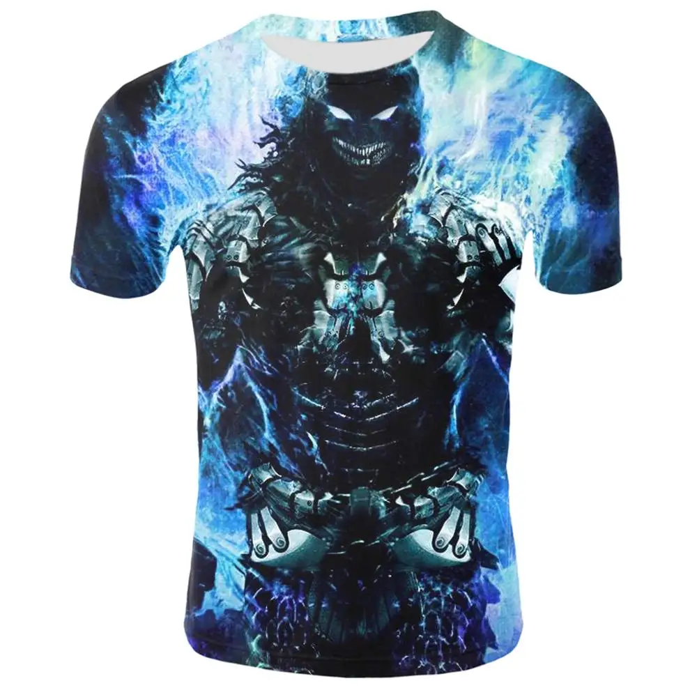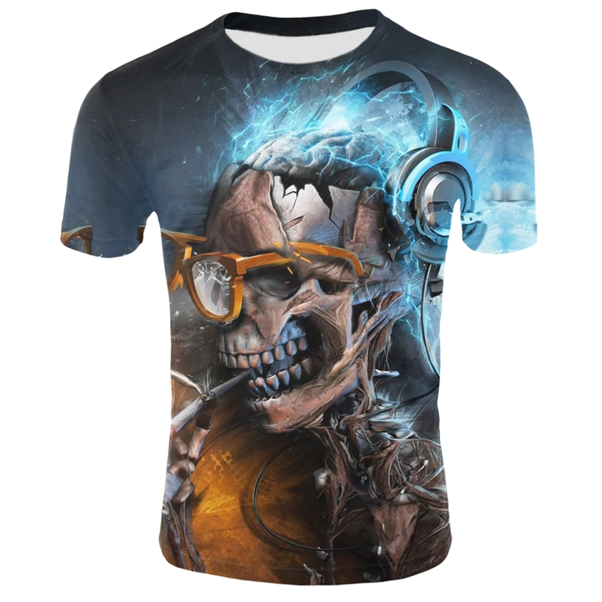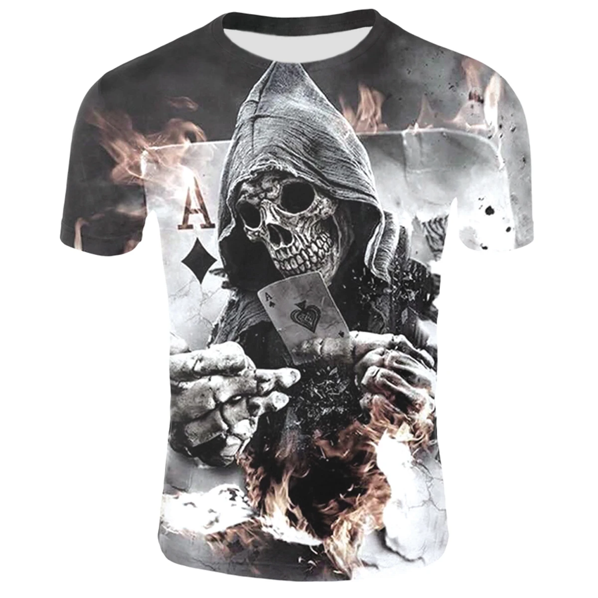 Мужская футболка с 3D-принтом черепа и ужасов, черный дышащий топ с коротким рукавом в стиле ретро, лето 2021
