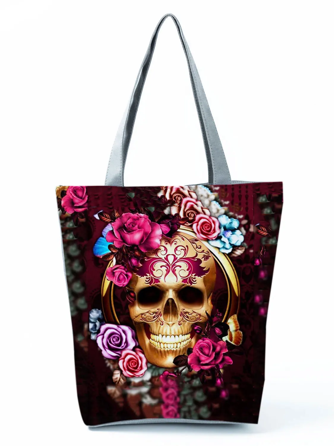 Сумка женская с принтом черепа и розы, крутая модная сумочка на плечо, тоут из экологически чистого материала для Хэллоуина, портативный саквояж для покупок