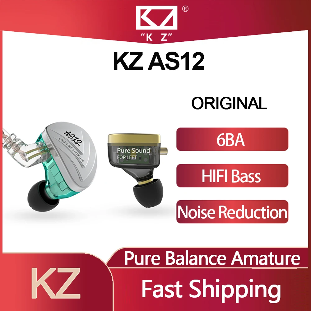 Оригинальные проводные наушники-вкладыши KZ AS12 12BA, сбалансированные арматурные приводы, Hi-Fi игровая гарнитура, наушники-вкладыши с шумоподавлением