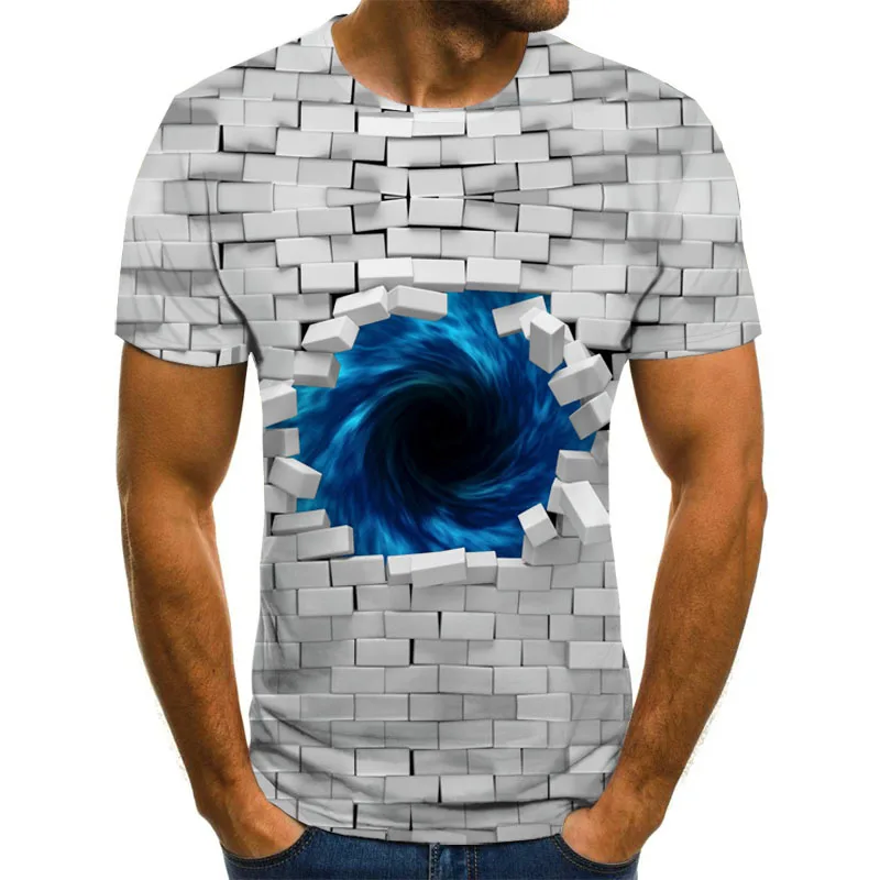 2021 трехмерная футболка с графическим рисунком, повседневный топ в стиле Харадзюку, мужская летняя трехмерная футболка в клетку с круглым вырезом, искусственная одежда