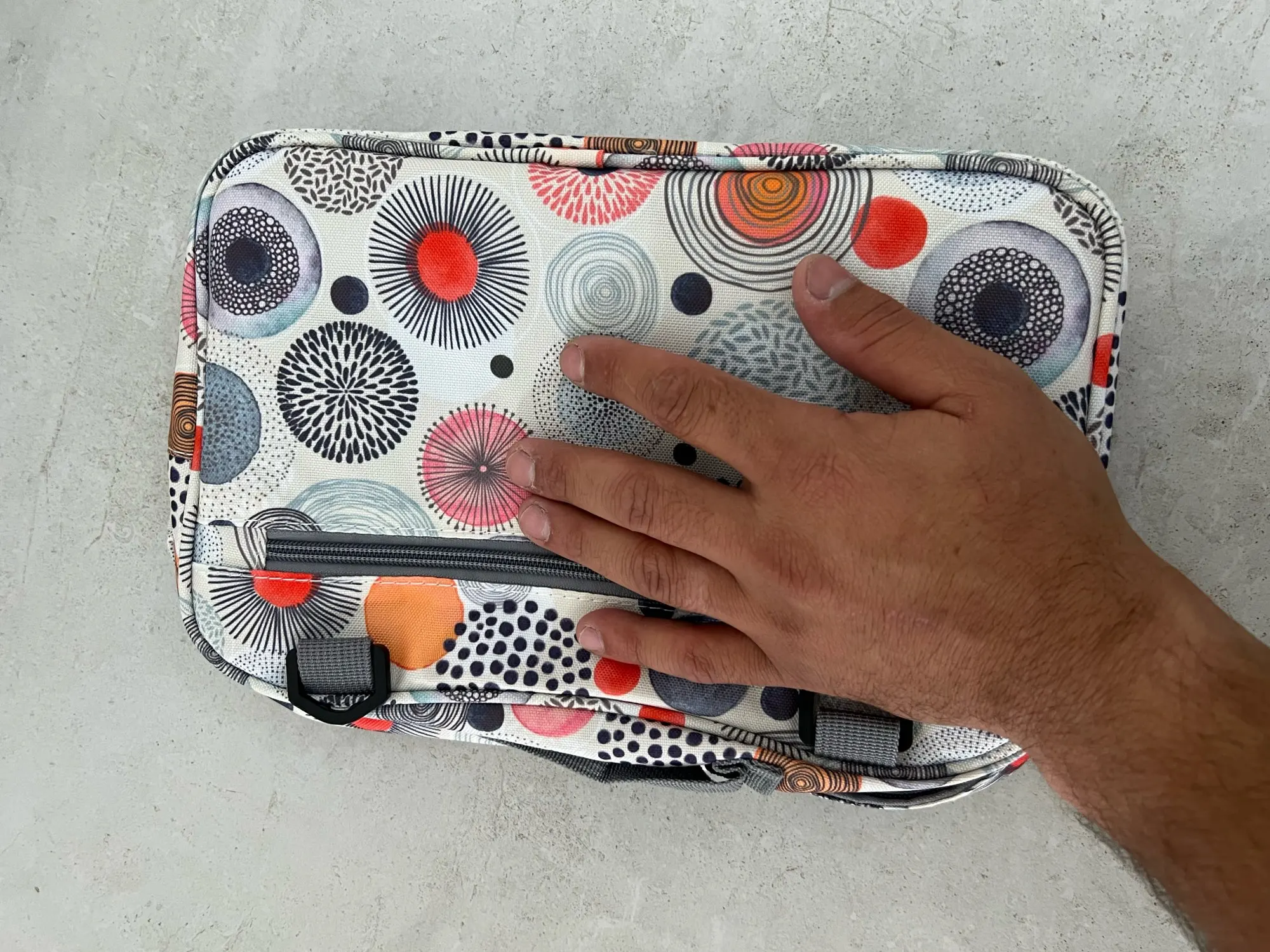 Очень мило и просторно. У него есть несколько карманов, и один из них термический для хранения молочного бутылки или другого типа напитка! Он прибыл почти на 2 недели раньше срока! Я рекомендую это