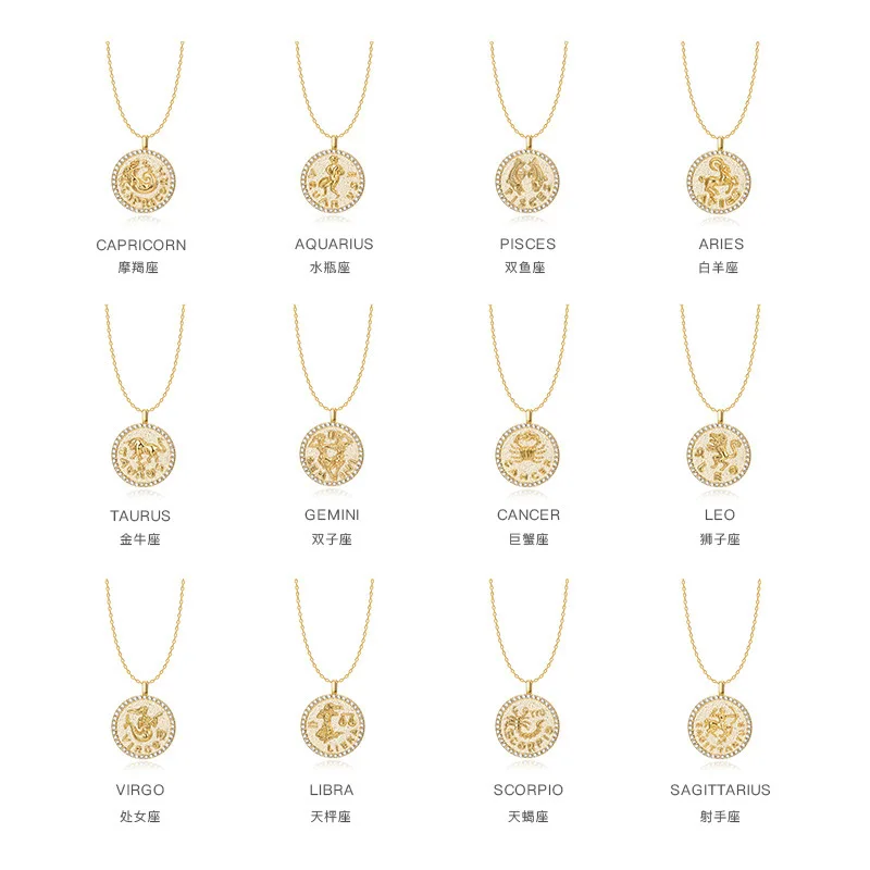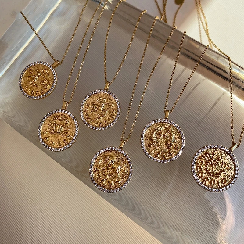 2022 Мода 14K ювелирные изделия для женщин двенадцать созвездий круглый Циркон зодиака ожерелье с кулонами в виде монет из чистого золота Цепочка подарок на день рождения