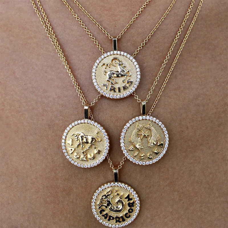 Кубический цирконий зодиака ожерелье для женщин в винтажном стиле; ...